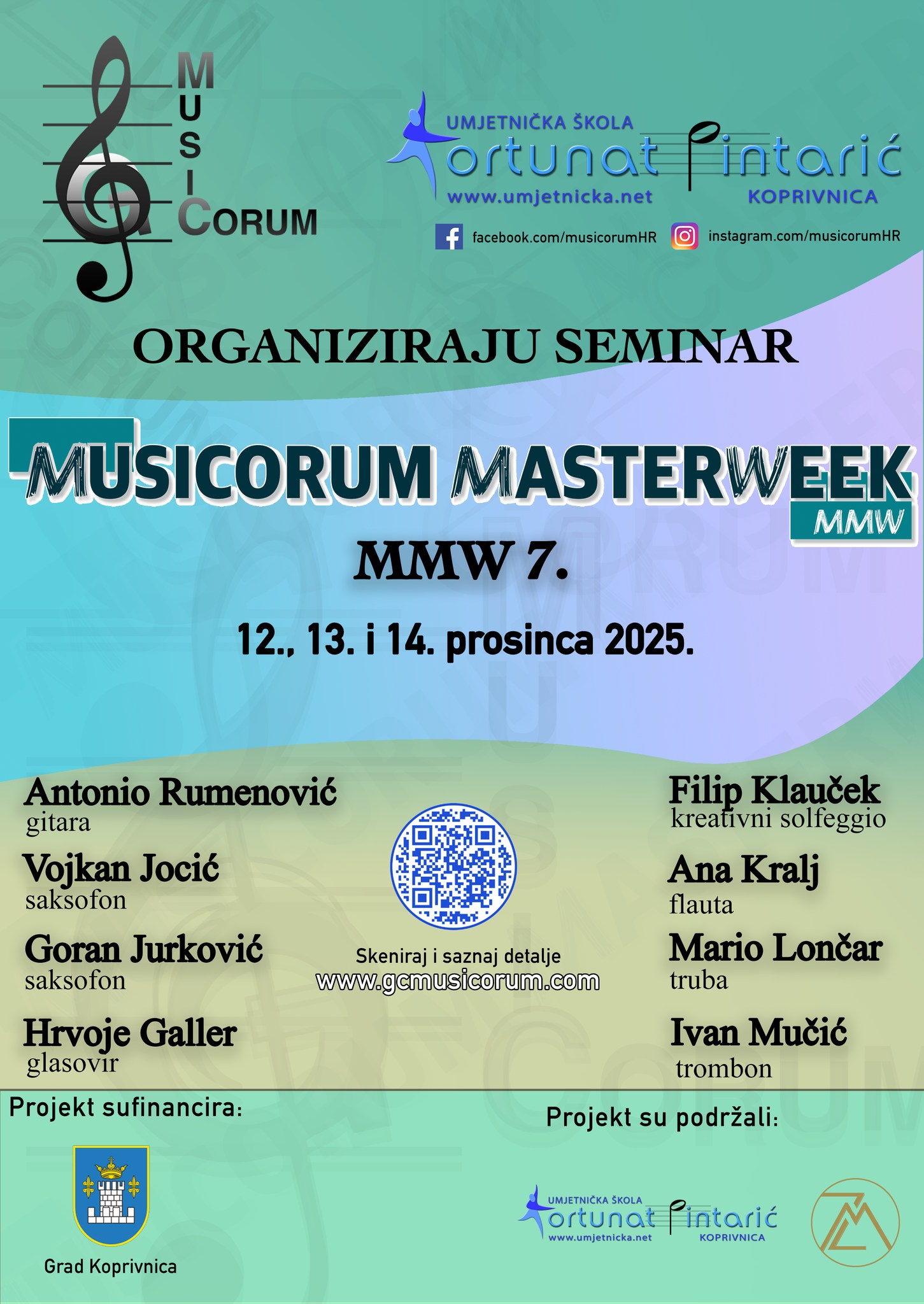 'MUSICORUM MASTERWEEK' (u nastavku skraćeno MMW) je naziv projekta kojeg je utemeljio Filip Klauček, zajedno sa profesorima i kolegama iz GC Musicorum, a zamišljen je kao radni tjedan ili vikend u kojem dolaze svi mentori održati individualne i grupne satove prijavljenim polaznicima. 'MMW' je otvoren za suradnju sa bilo kojom glazbenom školom u Republici Hrvatskoj.