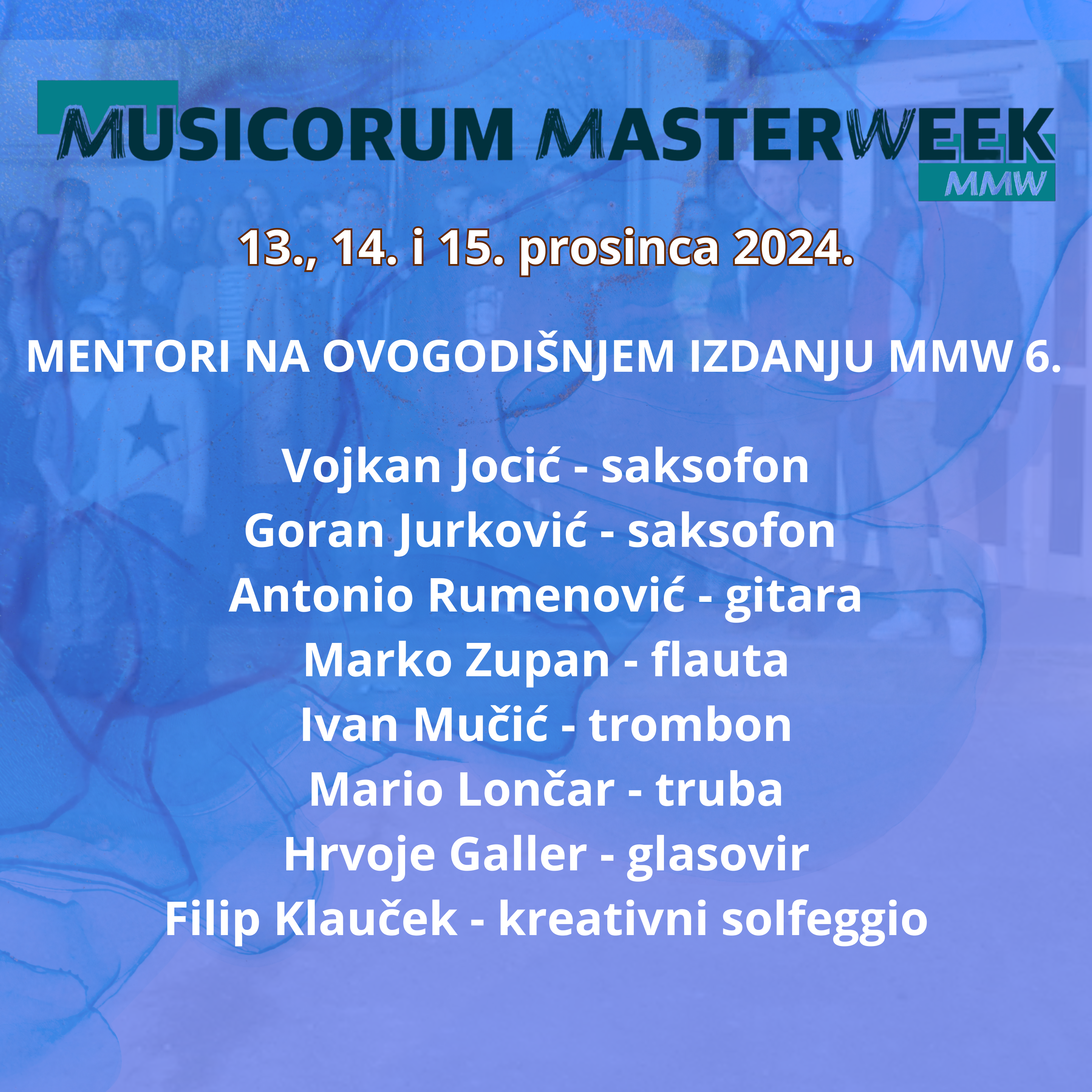 Mentori na ovogodišnjem petom izdanju seminara 'Musicorum MasterWeek-a MMW 6.' su:
